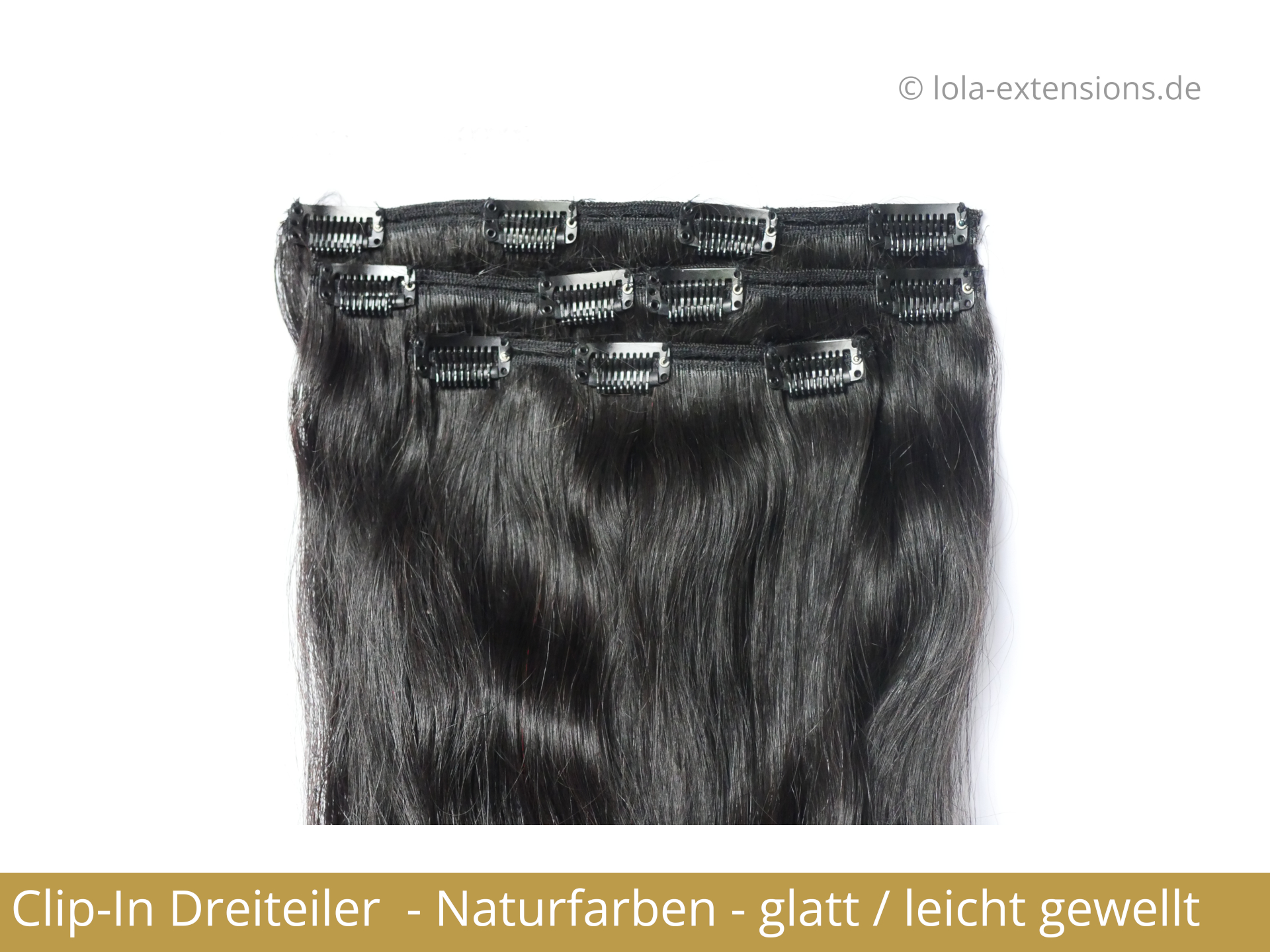 Our clip-ins for hair extensions are made from 100 grams of double-stitched human hair. The number of hairpieces included varies depending on the selected hair length. The shorter the hair, the wider the weft, resulting in more hairpieces with clips. Wefts up to 55 cm in length contain 11 sewn-in clips with 3-4 possible hairpieces, while from 70 cm onwards, there are 9 clips distributed across 2 hairpieces. Examples: