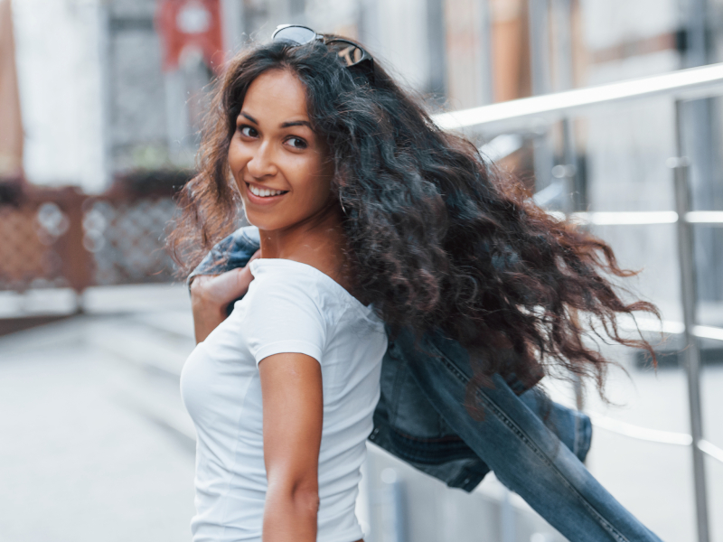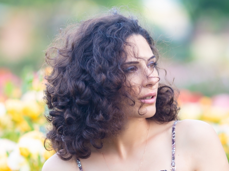 Human hair extensions in natural curls without chemicals.